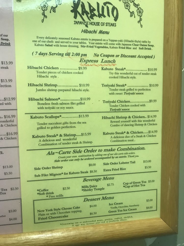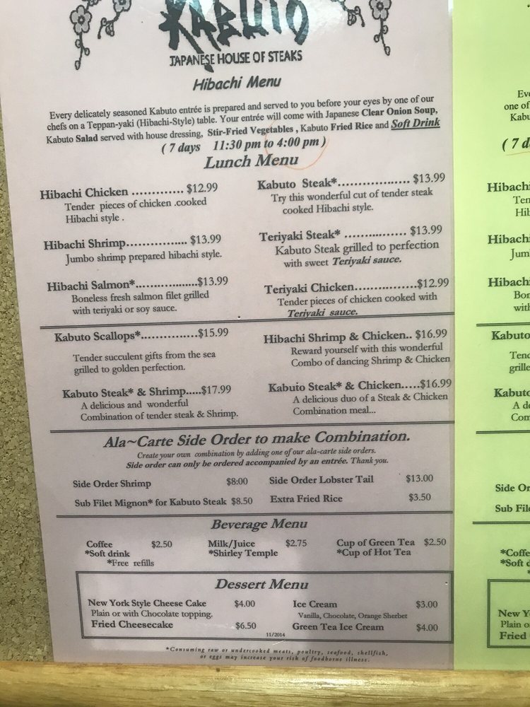 Kabuto Japanese House of Steaks and Sushi Menu (Update 2025)